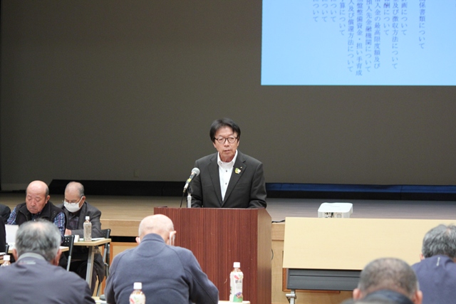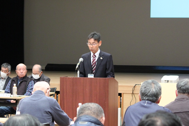 議事に先立ち、宮崎県北諸県農林振興局 技術担当次長 久保様並びに宮崎県農業協同組合都城地区本部 常務理事 新地様よりご祝辞を賜りました。